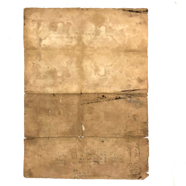 11 3/8" x 8 1/4". Paper is thin and fairly fragile, with some small tears and old fold lines, but lies flat and just needs to be handled with care.