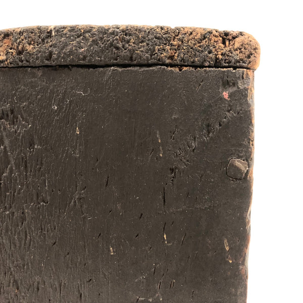 6 1/2 t x 6 1/8 w x 5 1/2 d and in good, as found condition. Sturdy and sound and with a very honest and warm feel to it.