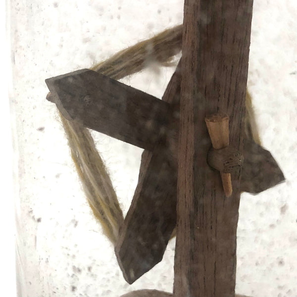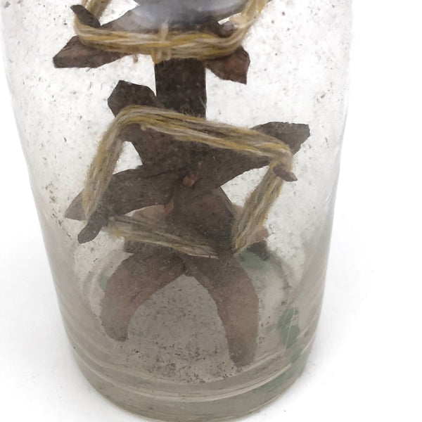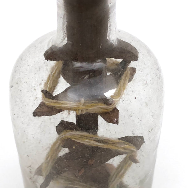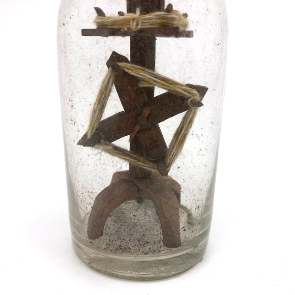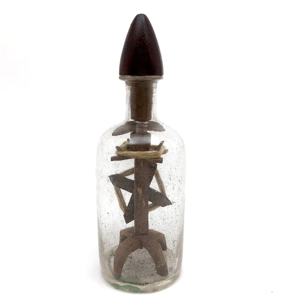 19th Century Folk Art Yarn Winder Whimsy in Blown Glass Bottle