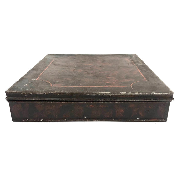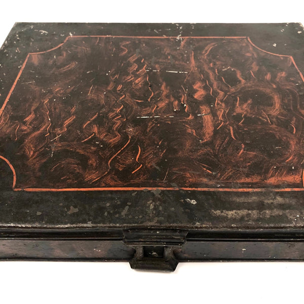 Found on the same day as the antique paint pigments I just listed, it seemed the universe was telling something, plus just nice to have grain painting and artist paint box combined in one. And quite a handsome looking box I think, with cartouche shape to the red and black grain painting on the lid, and then more of it on the sides. Inside, four open compartments--two small, two larger--and lid that lifts to a larger one. Found as pictured, with two old paint tubes and two brushes inside.