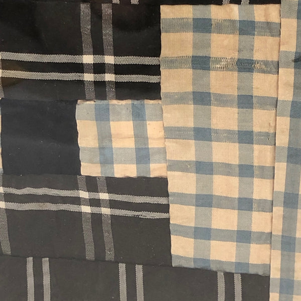 I'm not in the least a quilt expert, but I sure do love color and pattern, and this framed piecework block just struck me as a really beautiful thing. Just right I think in this old lemon gold frame, which encourages close looking at its wonderful play of (happily not quite straight) lines and grids in light blue, cream, navy and white, made all the better I think by a few old stains, speaking to its one-time function. To me, quite a heartening and satisfying thing.