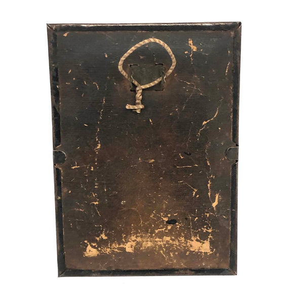 19th Century Thick, Scallop Edged Shaving Mirror in Original Tin and Leather Frame