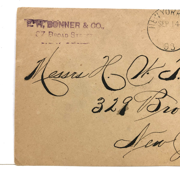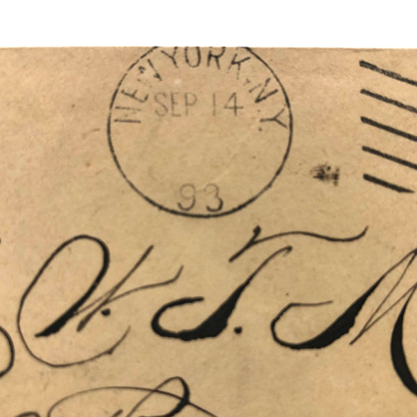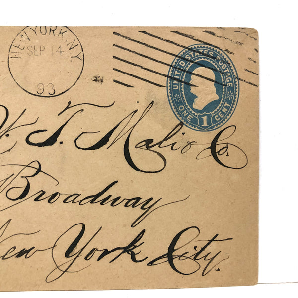 I spent a number of years working on Broadway in downtown New York just a handful of blocks from where 329 once was--an address I've learned that no longer exists (just 325, then 341.) This envelope appealed for making me imagine that stretch of lower Broadway in 1893, as well as just for the beauty of the boldly inked cursive, perfectly punctuated with pale blue 1 cent indicia and diagonally striped cancellation over top. A nice little piece of NYC history, speaking to the ever evolving cityscape.