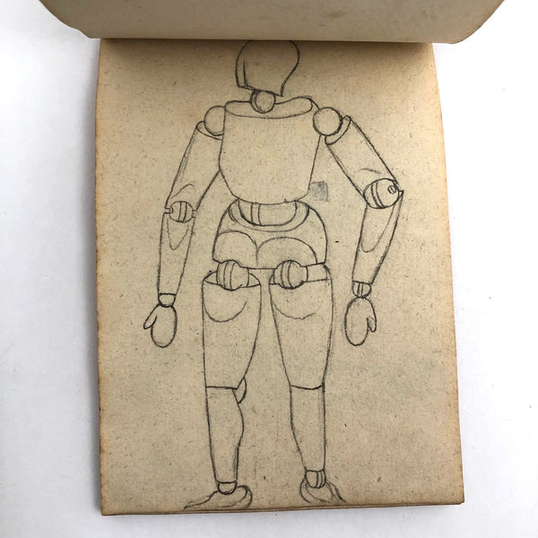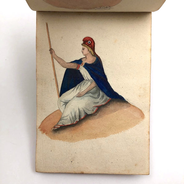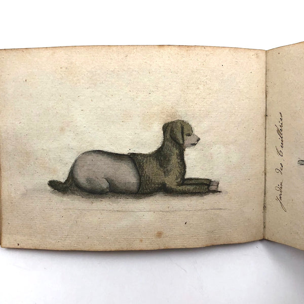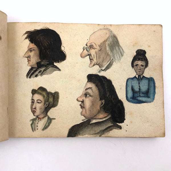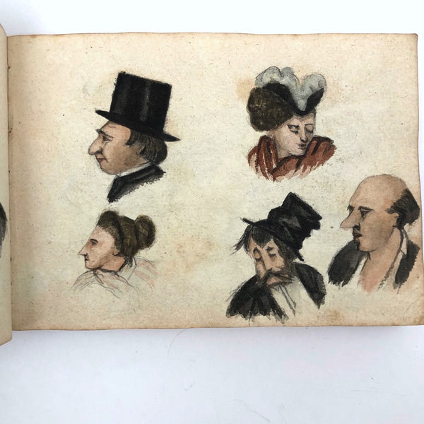 5 3/8" x 4 1/8".  39 pp total, containing 48 pages of drawings (filling entire pages), with many pages featuring drawings both on front and back. Done in a mix of watercolor and graphite. Photos are not all inclusive but give a good sense. All in excellent condition, on laid paper, with no tears and only minimal toning.