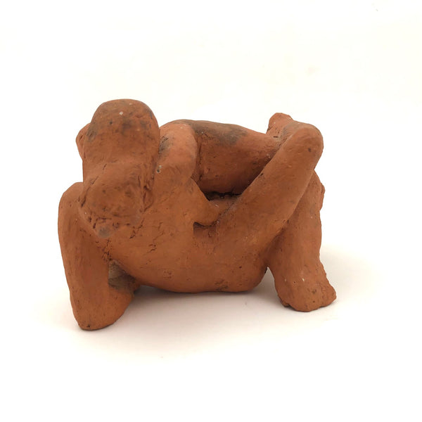 Approx 6 3/4” l x 3 1/2” t. C. 1970s or so i would guess. Good overall condition, with a few dark areas (I have not tried to clean.) It appears he one may have had longer legs and feet but I’m not totally sure—if lost, I don’t think it detracts a bit!