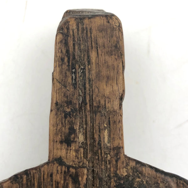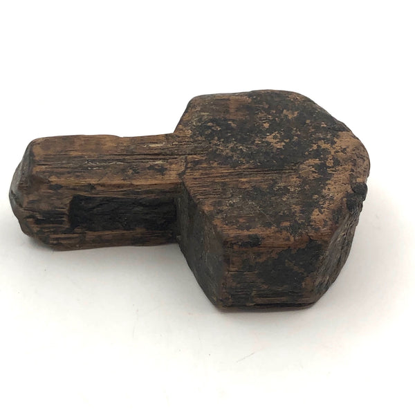 This small carved object seems to me to be at least several hundred years; it is super smooth and almost seems petrified. I'm guessing it likely once served a function rather than being a whimsy of sorts, but really I have no idea. I just like it as an object, that feels great to hold, and would just set it somewhere where I could pick it up, though it could also be strung and hung, or even worn as a large, super rustic pendant!
