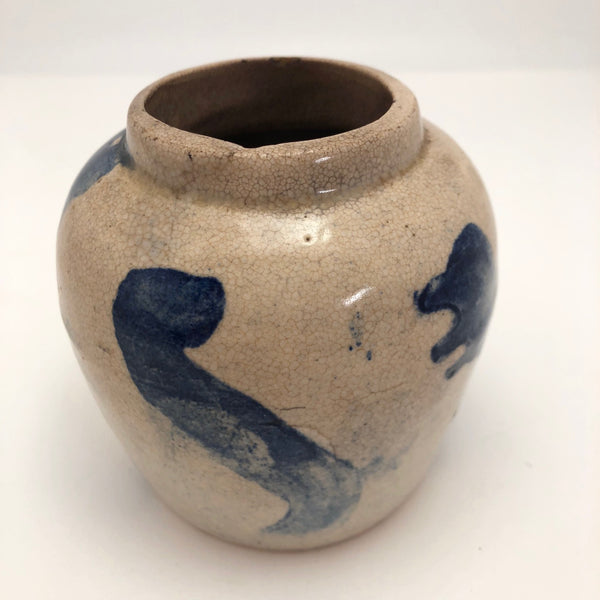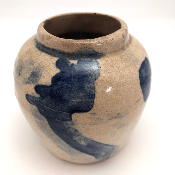 This small but stunning antique ginger jar, presumed to be either Chinese or Korean, feels like it belongs in a museum vitrine; this is really a beautiful little piece. Based on other ginger jars to which it bears closest resemblance, I’d guess it dates from second half of the 19th century.