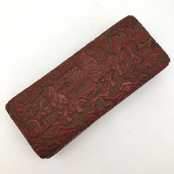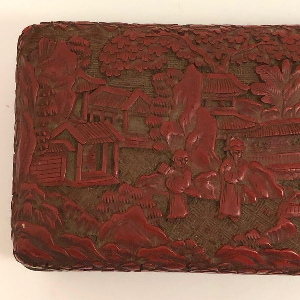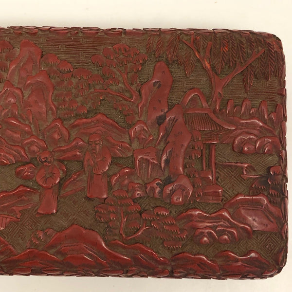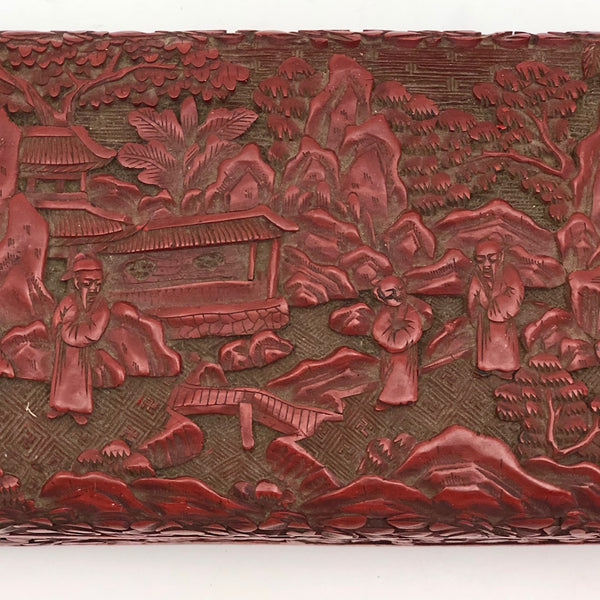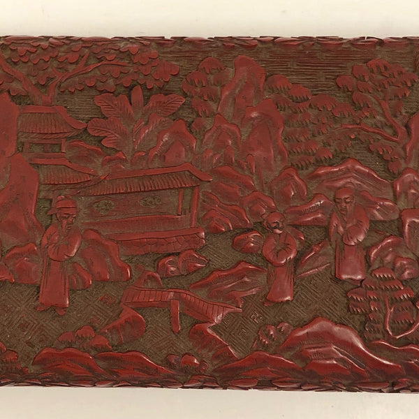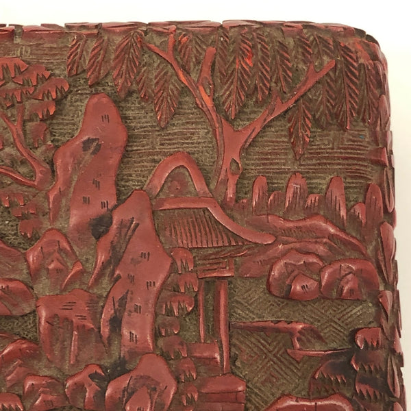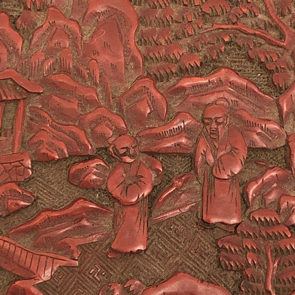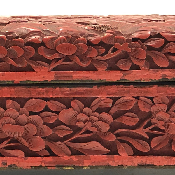 I am amazed by the fineness of so many Chinese antiques, and the more I look at real Chinese Cinnabar carving, the more amazed I am. This unusually large box would have been entirely carved by hand, then coated with many successive layers of lacquer. Cinnabar takes its name from the red mineral, a form of mercury sulfide, used to dye the lacquer (while the other colors have sometimes been used, red is most common, most likely due to the association of the color red with good luck.)
