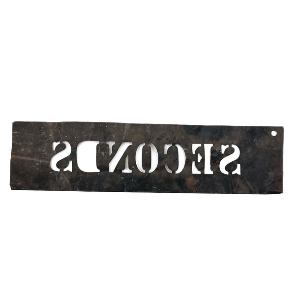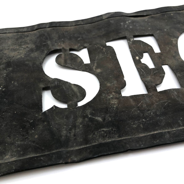 This may be my favorite thing I've found of late, which I perceive at least in part as a sort of "art without intent" object due to the absence of a divider on the "D", which has the effect of announcing it not as a perfect thing, but rather as a flawed one, a "second." As a lover of found language that resonates in different contexts, I also love it for all the other things that "seconds" might connote too--seconds of time, second in line, second helpings, etc. Late 19th c or so I believe and with a suppleness to the metal that makes me thinks it is copper.