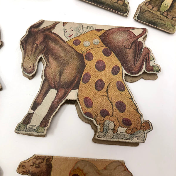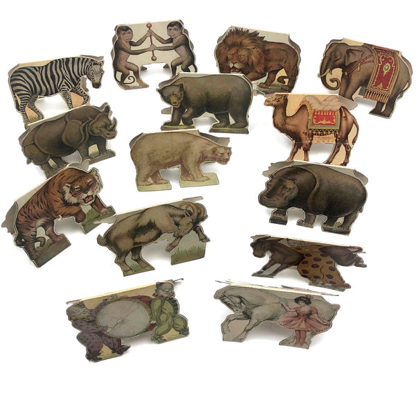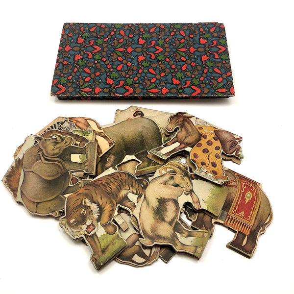 Antique Swiss Boxed Set of Double-Sided Color Litho Standup Animals