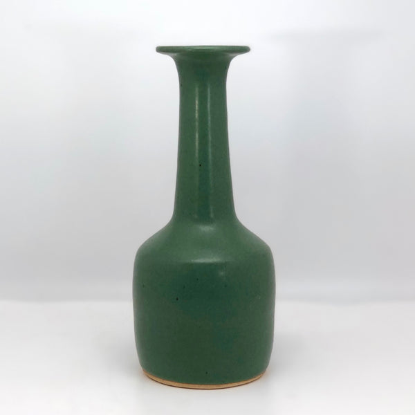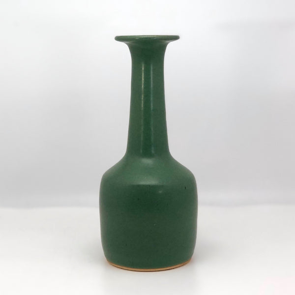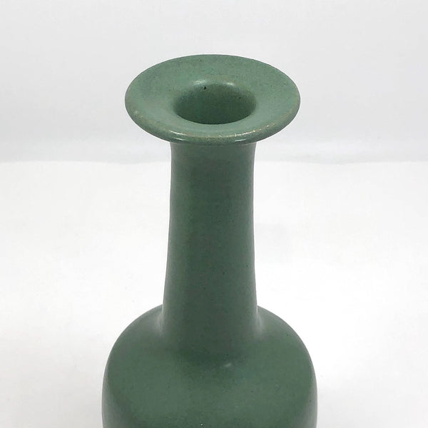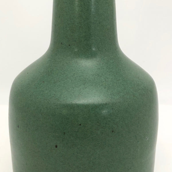 I think this is just about as lovely as a vase can be, with its elegant long neck and satiny glaze the perfect shade of green. Hand-thrown but unsigned, it has the appearance of an arts and crafts piece, though I am uncertain of its age. This I think would be the absolutely ideal vase for a huge Asiatic lily....elegant perfection!