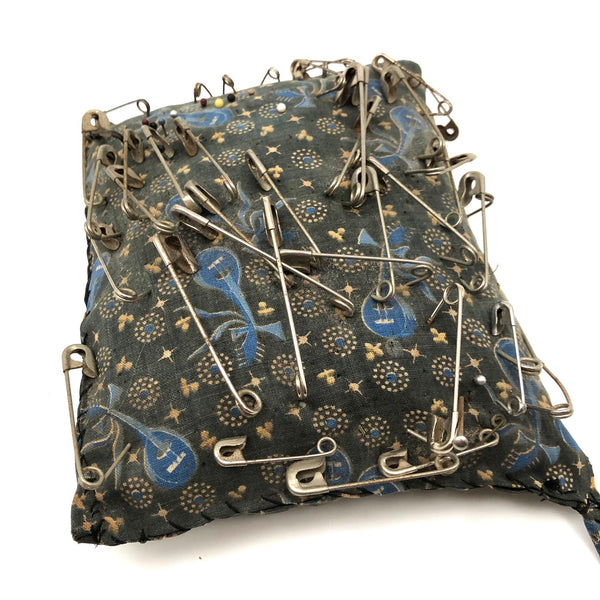 As Found, Old Handmade Pincushion with Many Safety Pins