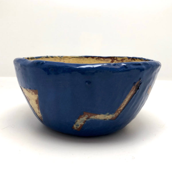 Awesome Electric Blue Pinch Pot Bowl with Yellow Graphics