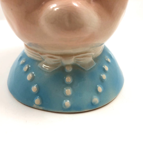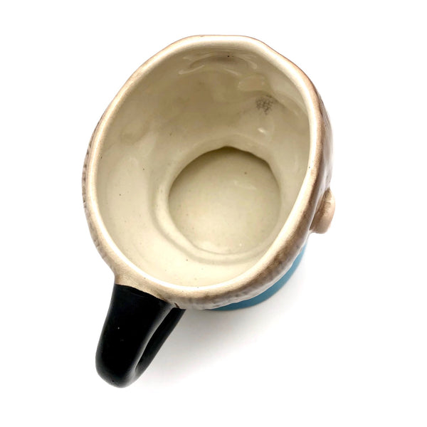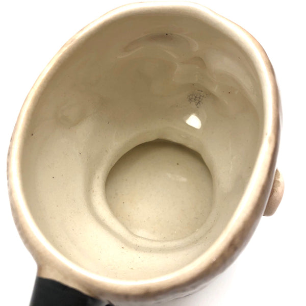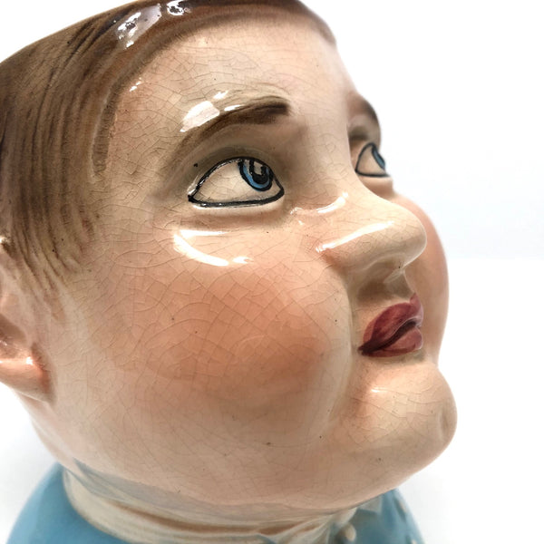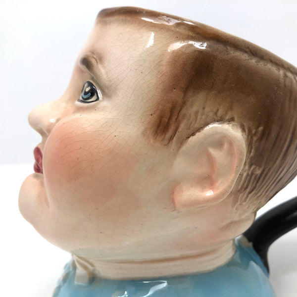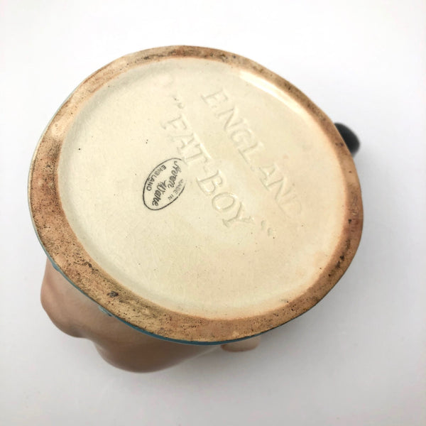 I had one of these when I first started the shop, so it was a bit nostalgic for me to find another, and while my tastes may have evolved a bit over time, I definitely still love this! I think the blue-eyed "Fat Boy" may actually be based on a Dickensian character of the same title, portrayed here in his early youth; certainly it is hard to look at a face like this one and not start generating stories! Pours well as a milk pitcher and fun on the table, or use as a planter, pen holder, or whatever.