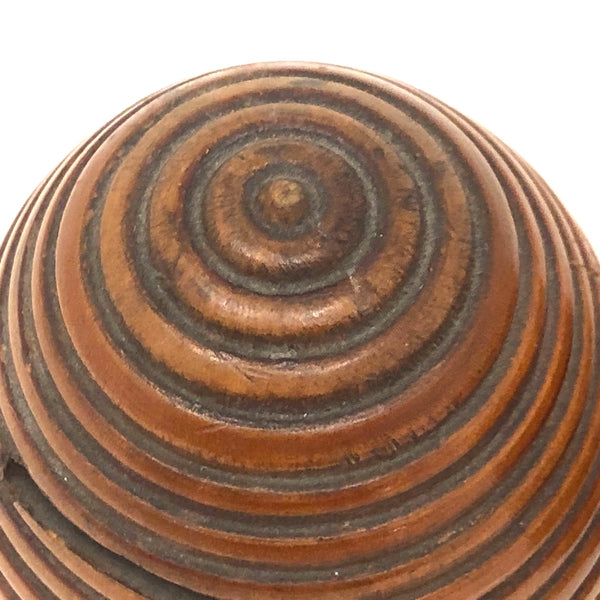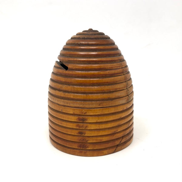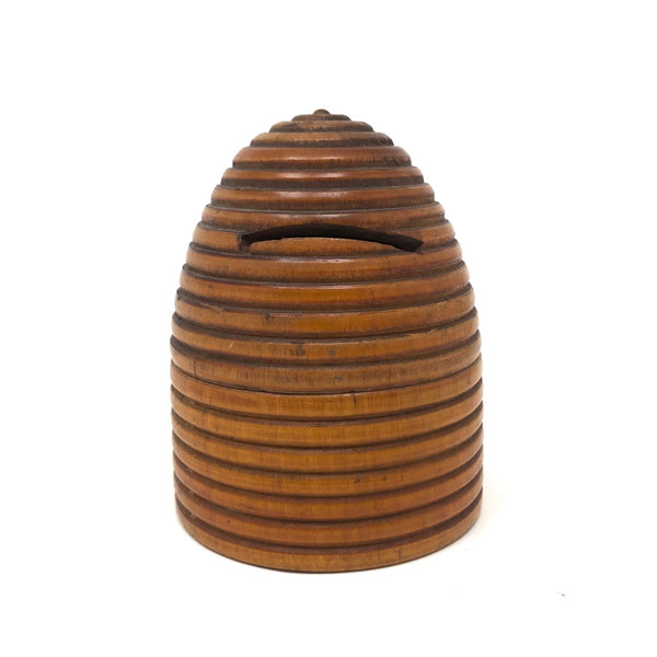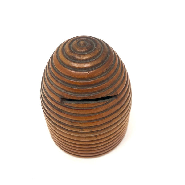 I love treen boxes and banks of all shapes and sizes, but it's hard to beat the beehive as a form, so I've always got my eyes peeled for ones like this. Late 19th/early 20th c. I believe, with a color that appropriately reminds one of honey. Of course the beehive symbolizes industry and teamwork and unity, all good things for sure, and saving one's pennies is a good thing too!