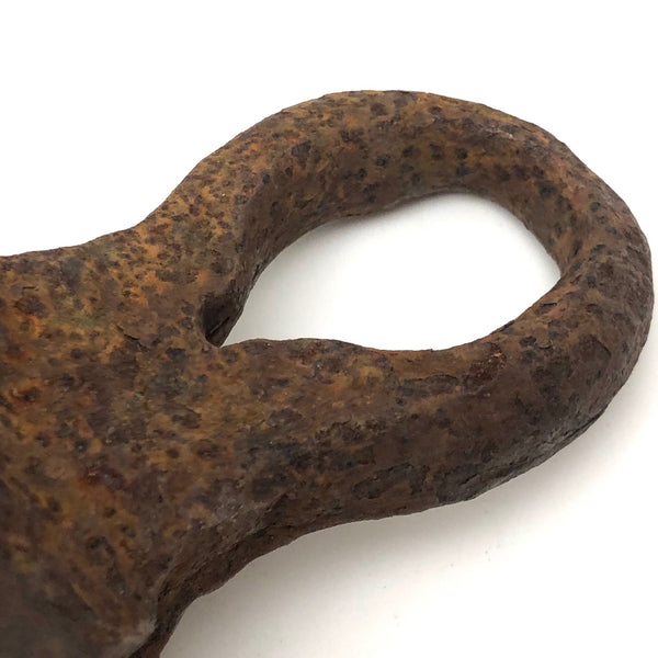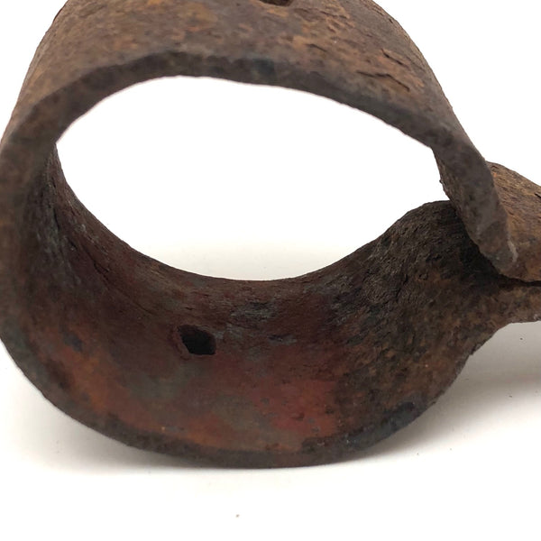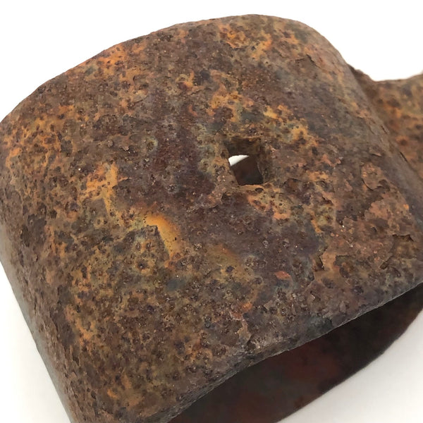I believe this old hand-forged iron ring might have been part of a yoke or harness, and maybe used for hitching. I just think it's a beautiful, sculptural thing, which could be used as a hanger for something now, or just set somewhere as interesting object, with this great rusty surface. I wouldn''t have thunk it, but here I am getting rather obsessed with rusty old iron things!