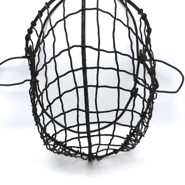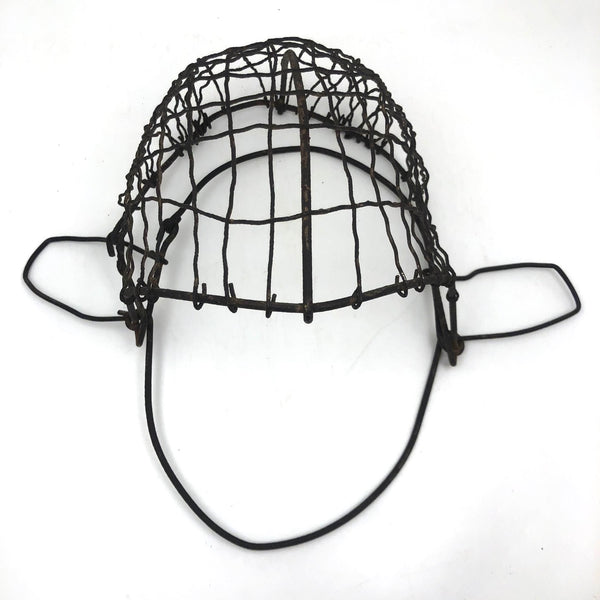 This would have been used as a muzzle for weaning calves, and one can still rather feel the presence of a calf wearing it--but what an evocative thing now in its absence. The hand-done wire construction reads like a line drawing in space, while casting terrific shadows, and I especially like that it can be configured and displayed in a variety of ways, like a mask or a basket, with ears out or folded in, the latter creating the appearance of eyes.