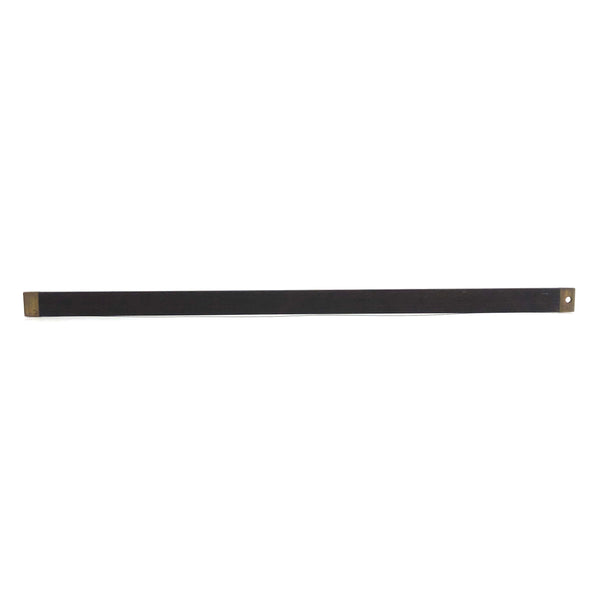 14 5/8” l x 5/8” w x 1/8” and in excellent condition, with a hole at one end for hanging.
