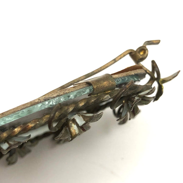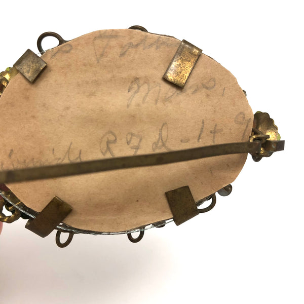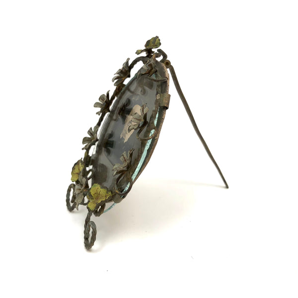 As found. Frame: 3" t x 2" w, holding what appears to be its original hand-cut glass; photo 2 1/4" x 1 3/4" oval. All in very good condition.