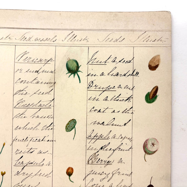 Bessie Slater's Beautiful 19th Century Ink and Watercolor Botany Chart: Flower Parts & Seeds