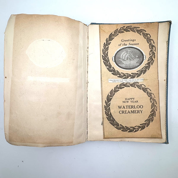 9 3/8" x 6 3/4". 80 numbered pages then another 20 or so unnumbered, all full or mostly so. Photos show a handful of selected pages first, then go roughly in order, not showing all pages but fairly comprehensively documenting. General aging and handling but this has been cared for, and it does not appear to me there are much of any losses. Stable, sturdy, spine in pretty good shape, all holding together well.