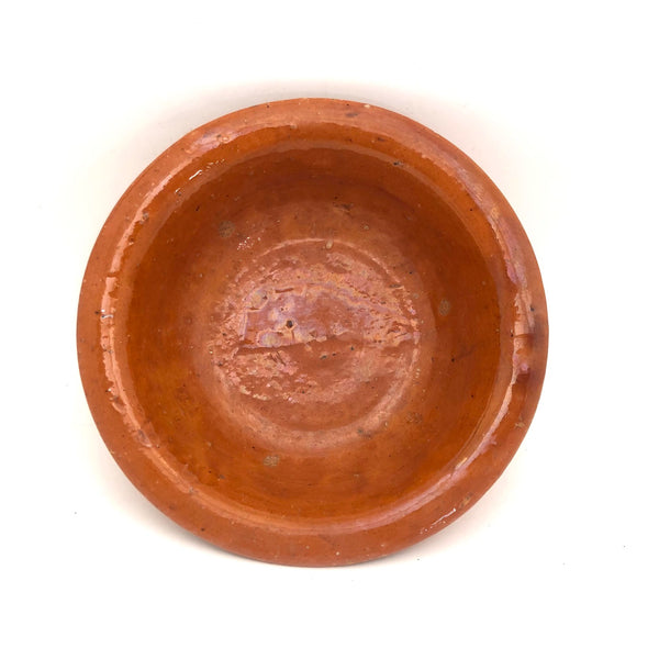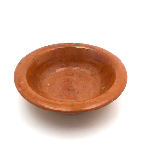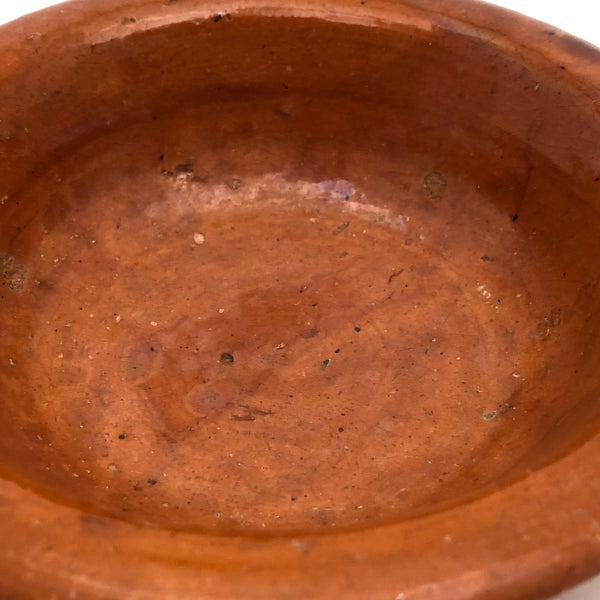 6 1/8" in diameter x 1 3/4" t and in very good condition, no notable chips or cracks, just a few small glaze chips to the interior of the bowl, very minor and not at all detracting. Not recommended for food but an excellent looking thing for holding anything else or just as it is.