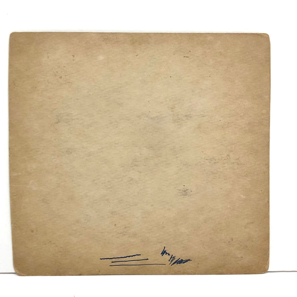 7 1/8" x 6 5/8",  ink on card, good condition. It appears a different pen/marker was used in a couple of spots (as evident in details), to add a bit more fabric to her skirt and under her arm!