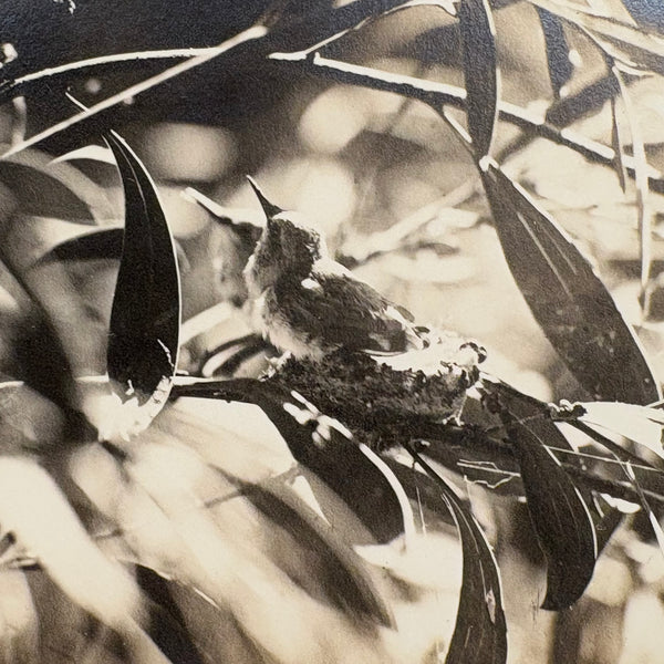 How to beat two birds on a branch, beaks up and poised to chirp? They look like baby birds to me, perhaps eagerly awaiting the arrival of mother to feed them. A very lovely one, with the birds almost disappearing amid the filagree of leaves--a happy discovery.