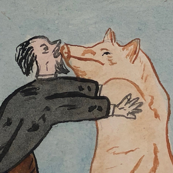 Surely made to be satirical, but pure love and joy to me! Great pig, great gestures, great snuggle!