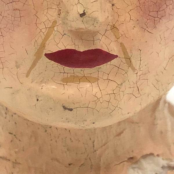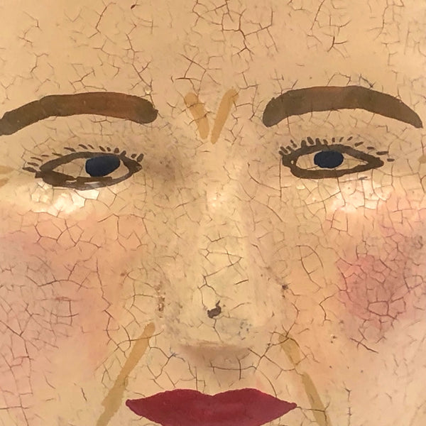 How to resist this beauty?! She's been knocked around a bit, but the dings seem perfectly in keeping with her hard-scrabble sort of disposition--definitely a fighter, this one, who seems poised to belt out a country song with plenty of life lessons in it. And the paint job really makes her, down to tiny wrinkles painted between her brows and at the corners of her eyes. Fabulous.