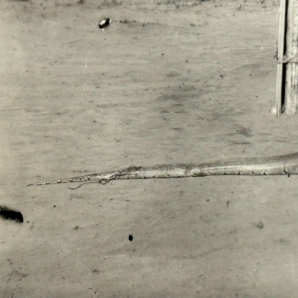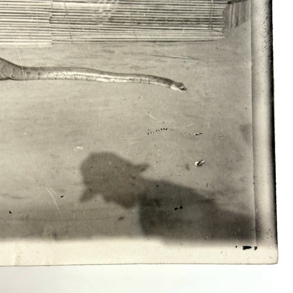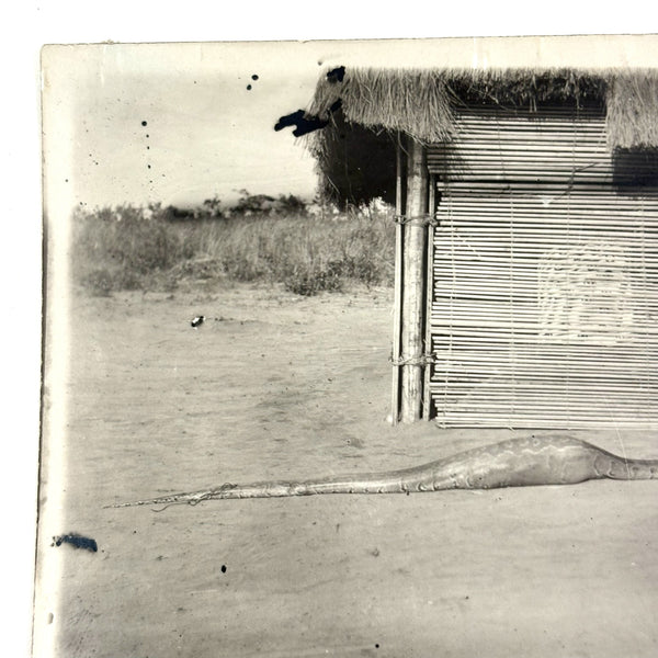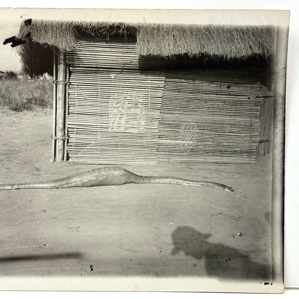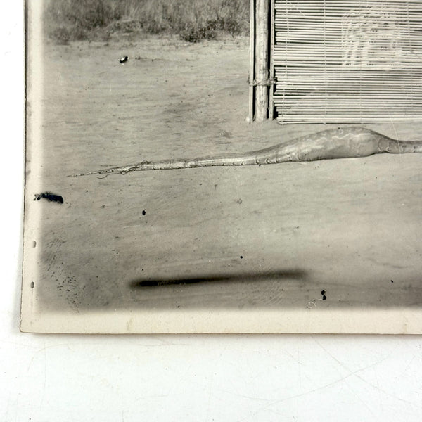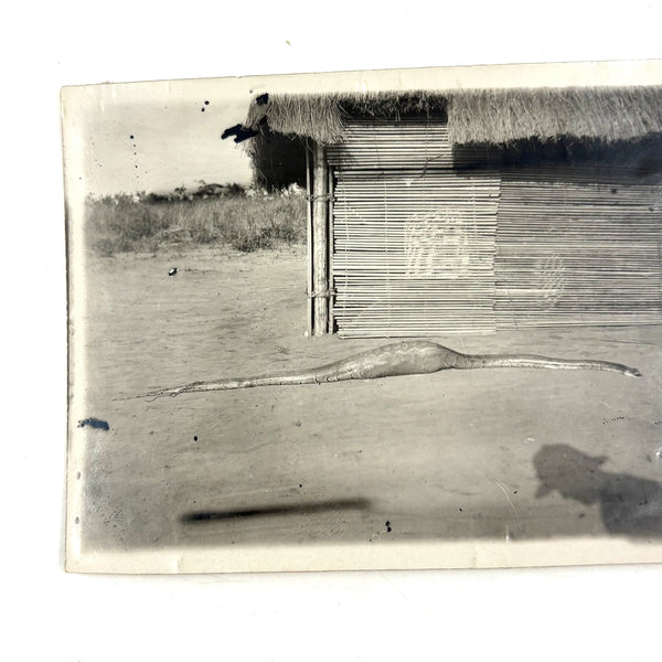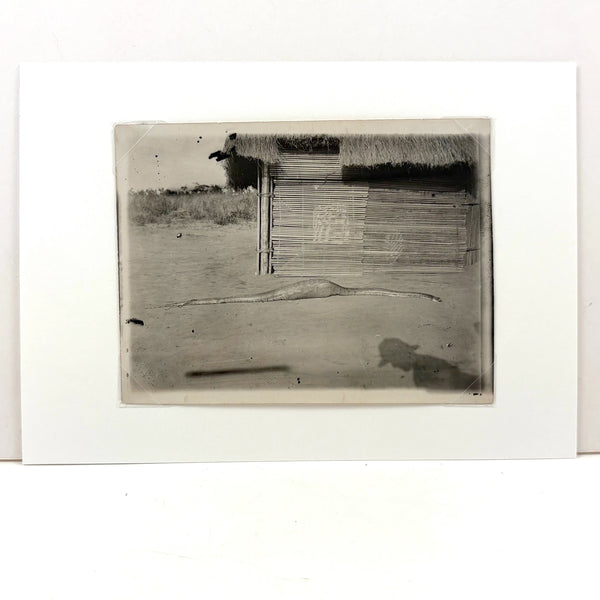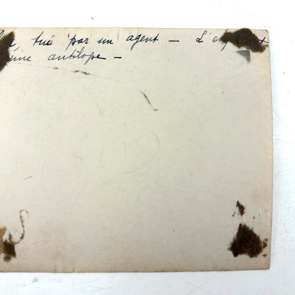 4 5/8" x 3 1/2". Good condition. A few very black spots on the photo, most prominently at upper left center, which appears more as if on the negative than atop the image. Text on reverse in French, with remnants of black paper at the corners. Shot here inside clear photo corners.