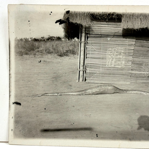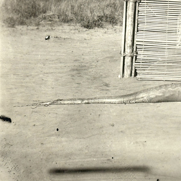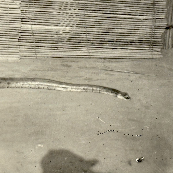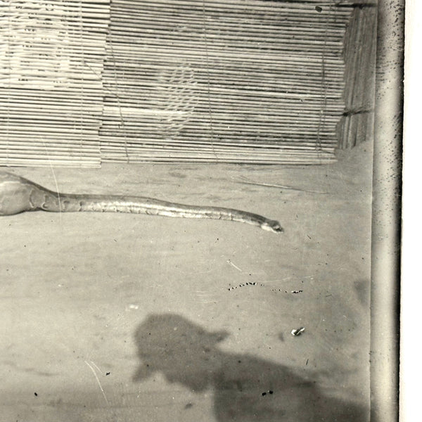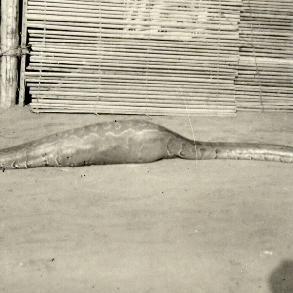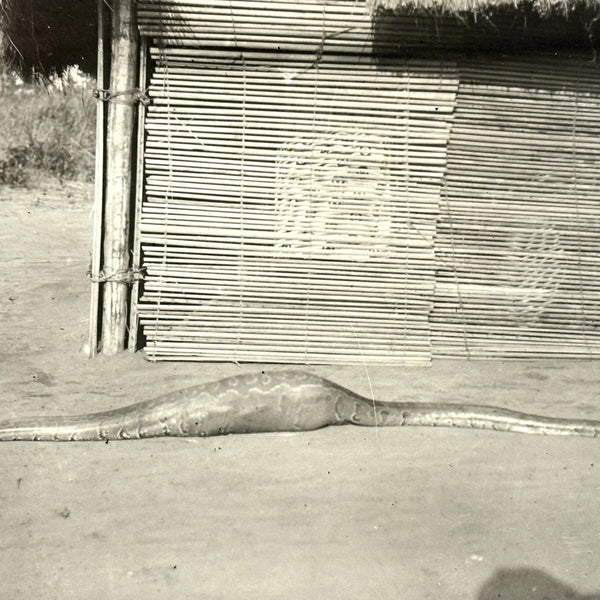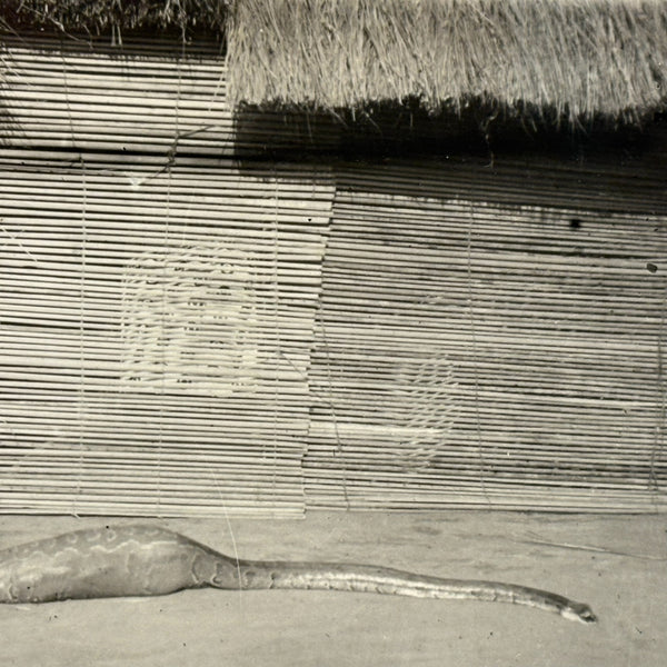 The sight of a boa having just consumed an antelope is indeed quite a phenomenal one, and the form of the snake's very long body here, large bulge at the center, just formally quite extraordinary. But for me it is the presence of the shadow at lower right, of man in hat looking rather like an inspector and coming in on the diagonal that really completes it for me. Plus that second shadow, a sort of mysterious near-horizontal line at lower left, and the patterns and play of geometries on the slatted wall with overhang of grass roof too. Another photo I could look at all day and forever.