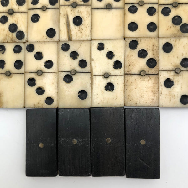 Bone and Ebony Dominoes with Brass Spinners - Complete Double Six Set