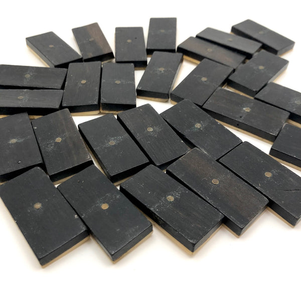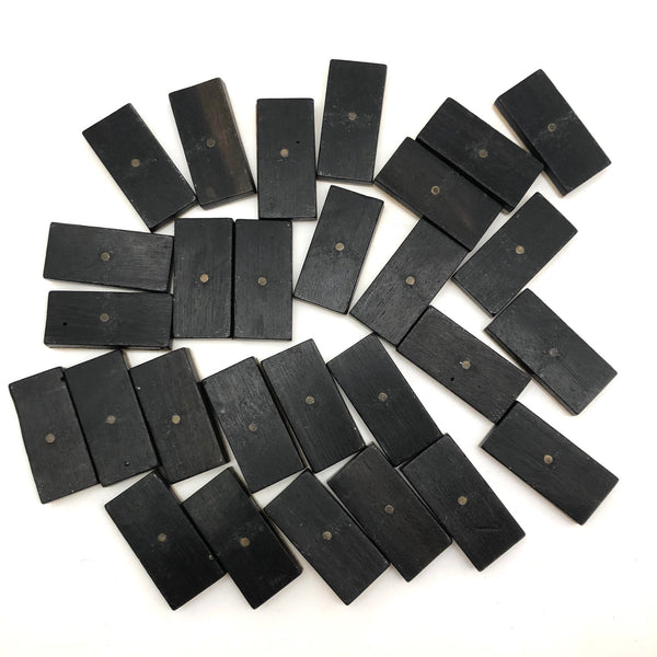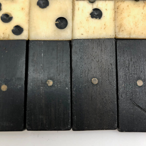 I believe dominoes rivals cribbage as the perfect cocktail hour game, and all the more enjoyable when played with beautiful antique bone and ebony dominoes, which definitely give the game added weight, and are a treat to hold and to lay down. The brass spinners at their centers make for even more fun, and these spin brilliantly--perfect for breaking the concentration of your opponent(s)! I'd argue old bone dominoes like these make the perfect gift for a host--right there to play if you start to drive each other crazy, and also just special objects should it turn out said host is not an avid game player.