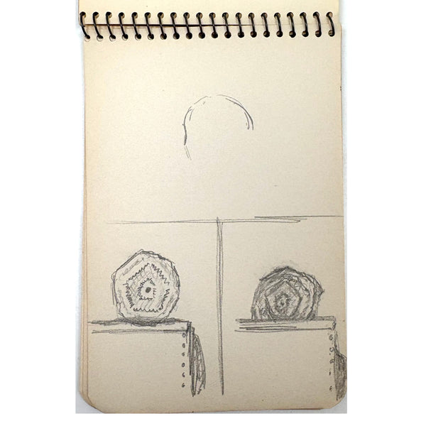 6" x 4" notebook. All pages with drawings pictured, with empty pages scattered throughout. Very good condition.