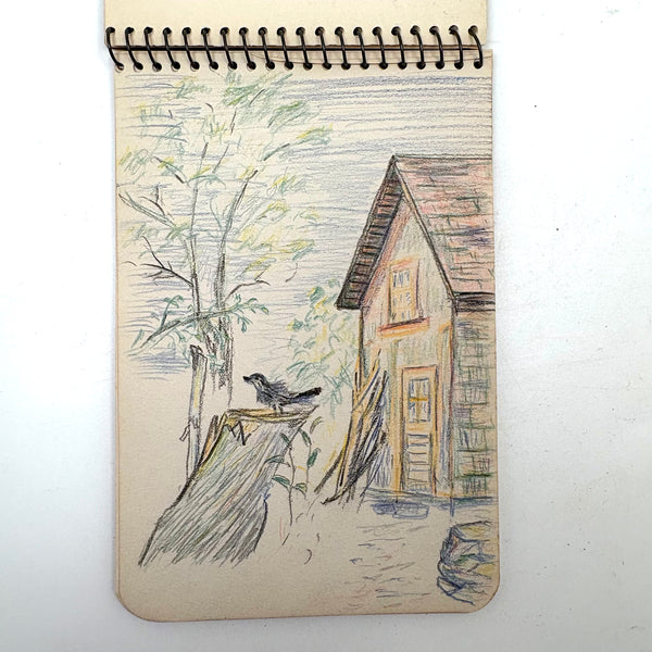 Building a Log Cabin and Observing the Environs, 1953 Spiral Bound Pocket Sketchbook