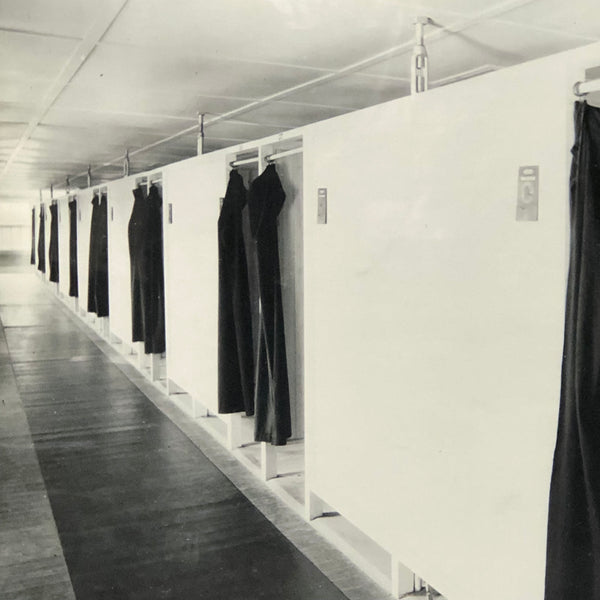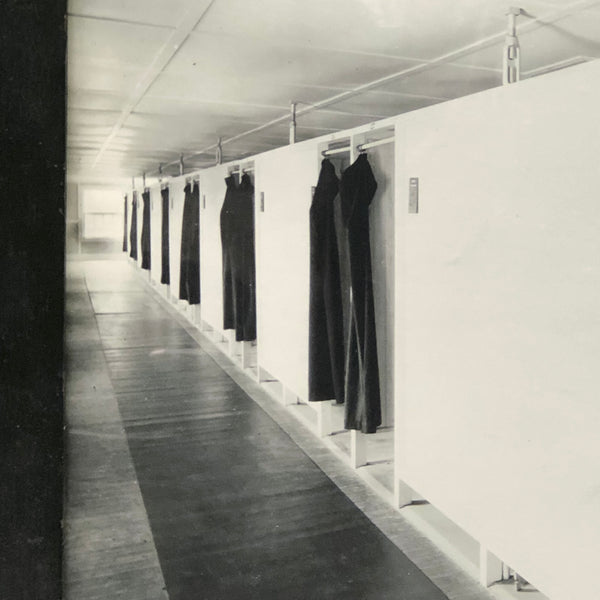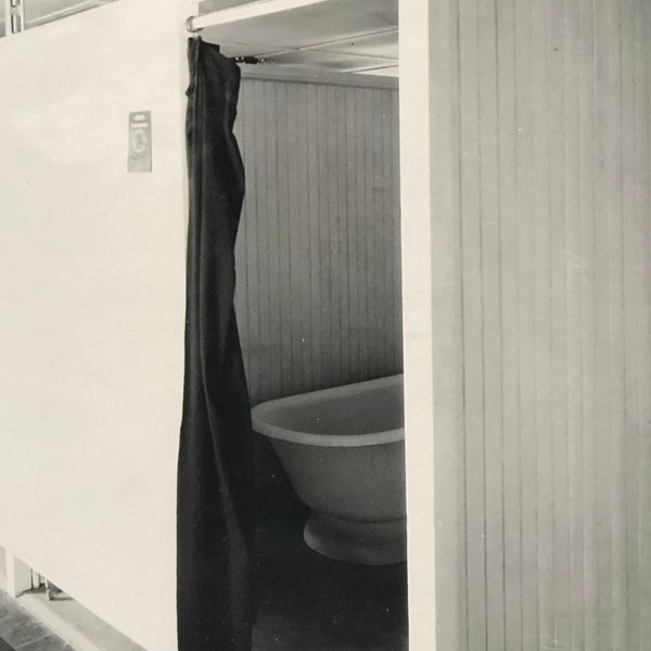 I love the history of it all, and--having grown up near Saratoga, its specific connection to the particular definition of the place. But I especially love this photograph itself, shot from one corner, with a view of the end of the tub in closest proximity, and then just this line of black curtains receding into the distance. It makes me think a bit of a Robert Irwin installation, say, at the old Dia in Chelsea, laying in wait of visitors to animate it--and more broadly of the particular public-private nature of a space like this, and all of the dynamics, and potential interactions, it sets the stage for. I could write about this all day, but I'll let it be!