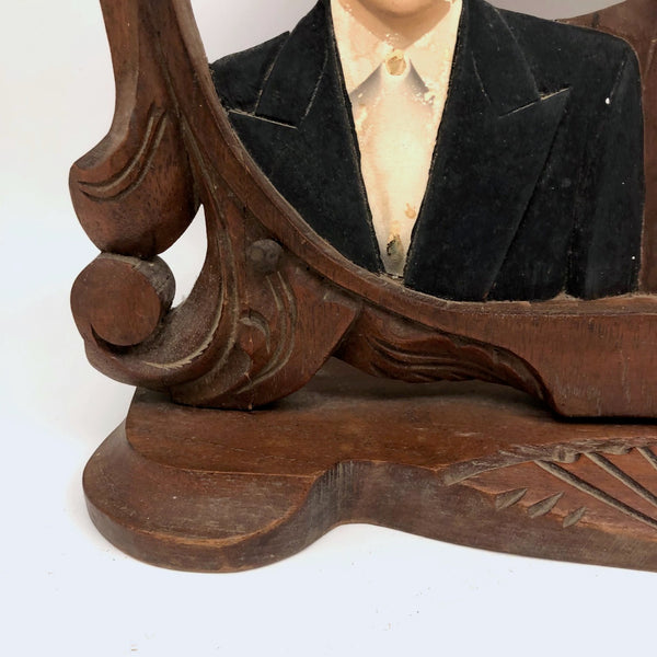 From the website of the Met Museum: "Fotoescultura is a Mexican folk art form that flourished from the late 1920s through the early 1980s. Often commissioned by traveling salesmen to honor individuals, commemorate important events, or memorialize the dead, fotoesculturas typically consist of a hand-tinted portrait photograph, trimmed and adhered to a carved mount of the same shape and surrounded by an elaborate wooden frame. Sold primarily in Mexico as well as in Mexican-American communities in Houston and Chicago, fotoesculturas were particularly popular during and after World War II, when families were anxious to memorialize absent sons, brothers, and fathers."