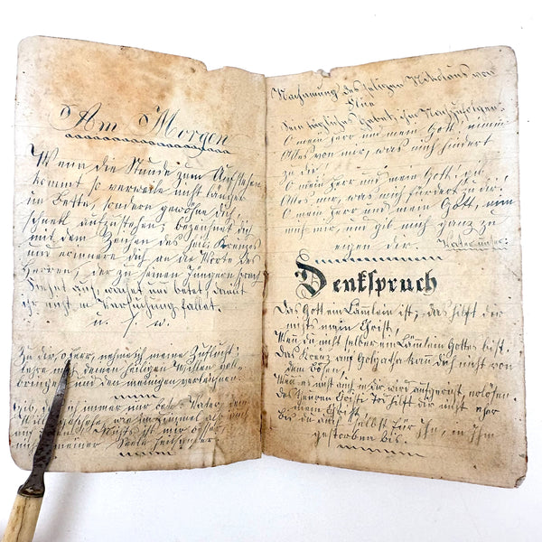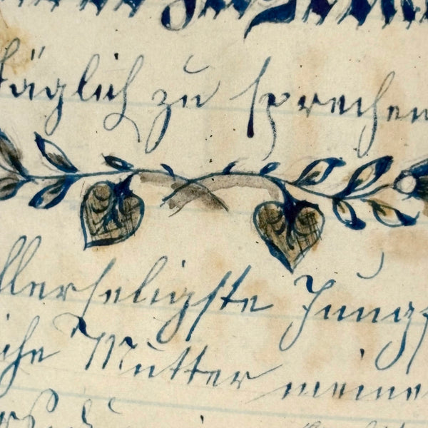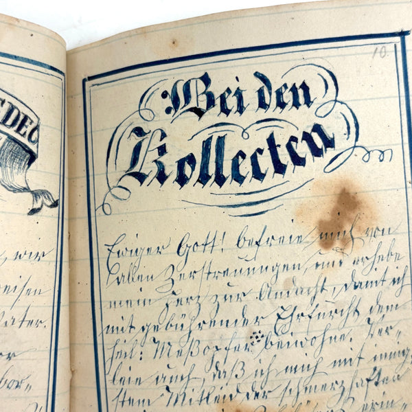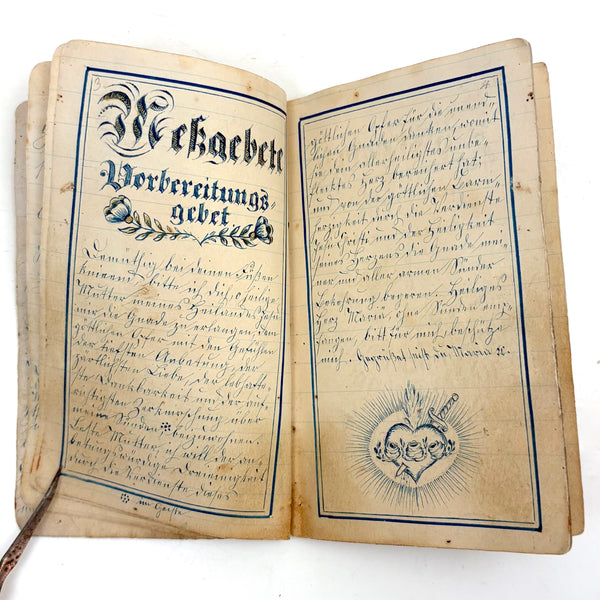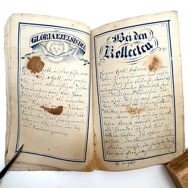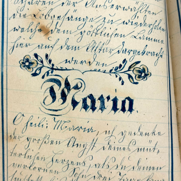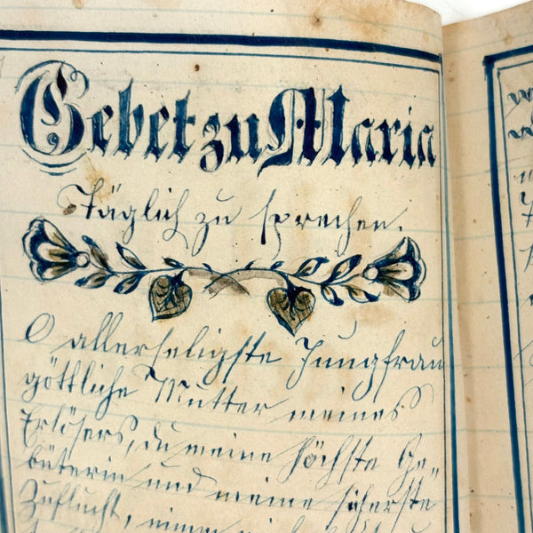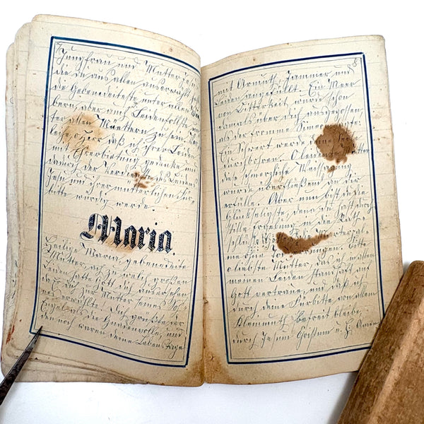 I often regret not having taken German, if only to be able to properly read beautiful German and Pennsylvania German fraktur lettering, but the beauty of this manuscript certainly transcends written language, and perhaps feels all the holier for my lack of capacity to readily translate it! It is what I believe would properly be described as a devotional (a prayer book, but infused with personal reflections, meditations etc.) With the assistance of AI, translation of one passage here: Most holy Mary, mother of God, you my bearer and safest refuge offer me your protection today; behold, I will entrust myself to your motherly arms. I pray through this difficult time. Preserve my love, bless me...) On and on. Spending a little time on translation, it feels quite infused with urgency and immediacy to me! (Making me thing of Mexican ex voto retablos, too.)