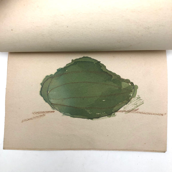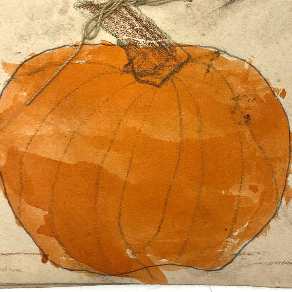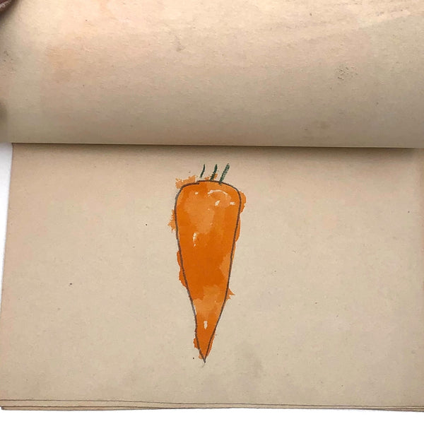 I purchased a handful of works done (and all signed, some twice!) by the young Carol who made this booklet quite a good many years ago, and I think it's my favorite of the lot--for the pumpkin on the cover, yes, but especially for the less showy potato and  expressionistic watermelon!