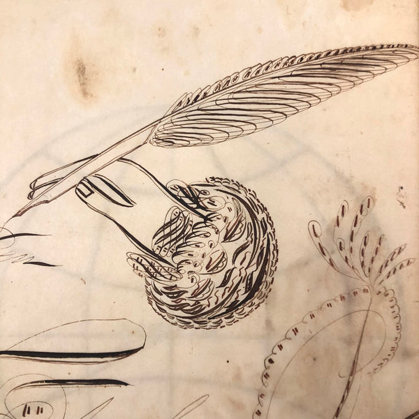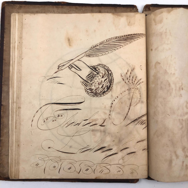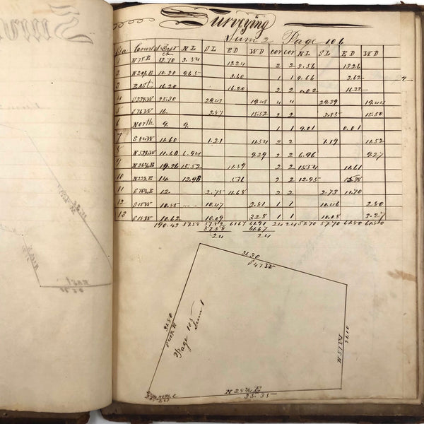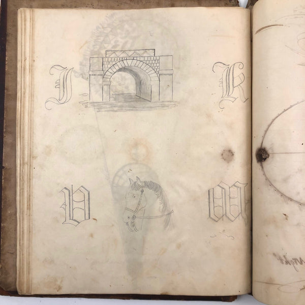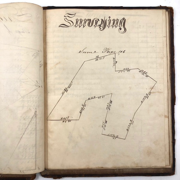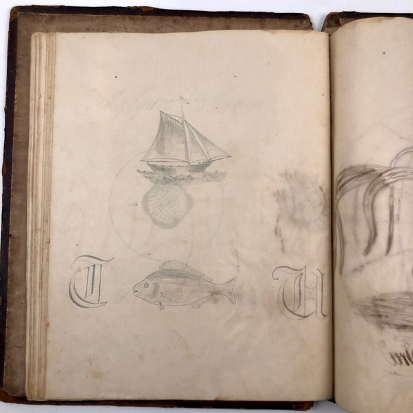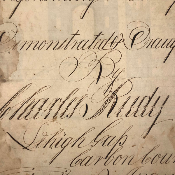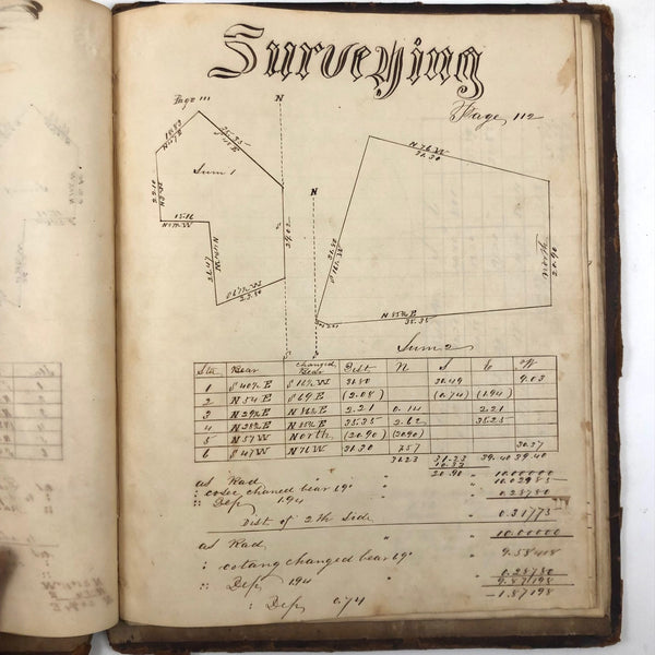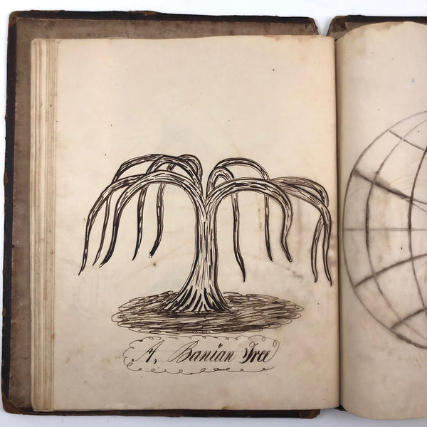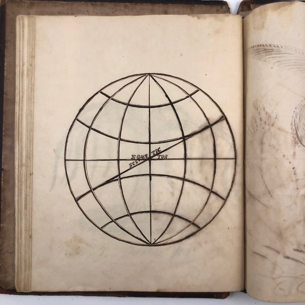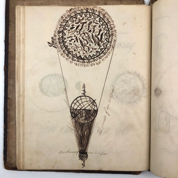 I didn't know it when I found this, but turns out that its maker Charles Rudy (b. 1837)—the super bright and very entrepreneurial youngest child of Durs Rudy (a Swiss immigrant who kept a store and hotel, became an organist and was also, interestingly, a talented fraktur artist)—would become quite a notable figure not just in Lehigh Valley, PA, where he grew up, but in Paris, where he established a school that became a hub for international nobility and the sons and daughters of many of Paris’ most fashionable citizens. Rudy founded the early iteration of his “Schnecksville Academy” in PA c. 1856, at the age of 19, where to 36 students he taught all the courses, including music and drama! I believe this 1854 notebook—titled “A Key to Common Trigonometry & Surveying Demonstrated & Draughted by Charles Rudy” (and including a series of wonderful drawings relating to astronomy, tides, etc. at the end)—was likely an early draft of a teaching notebook. There is tons more about Rudy’s fascinating life online, including a great long article in Lehigh Valley’s Morning Call.