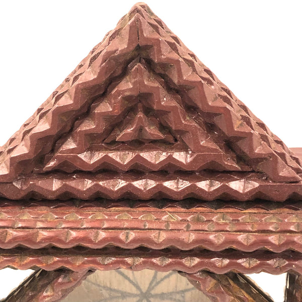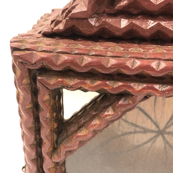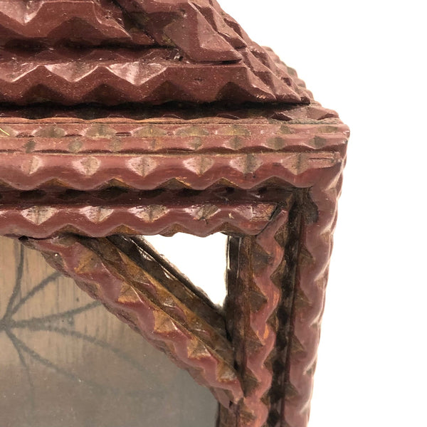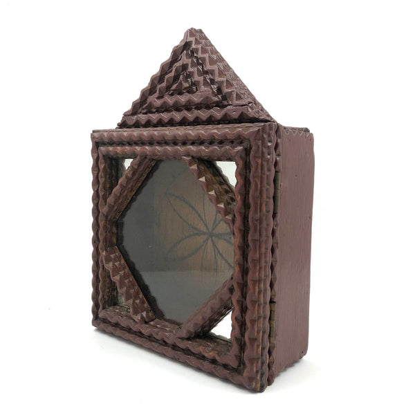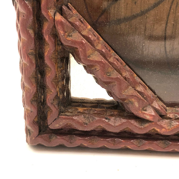 Chip Carved Tramp Art Clock/Watch Case with Glass Front and Mirrored Corners