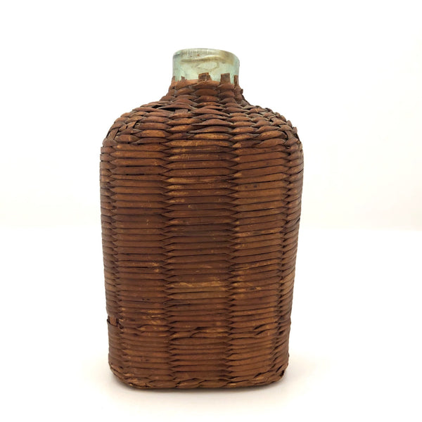 While missing a stopper, it is in remarkably good condition--the wicker is tight and not very fragile--and if not filled again with whisky would make a very sweet little vase--maybe for a few daisies, or forget-me-nots! 4 3/4" tall x 2 3/4" wide x 1 3/8" deep.