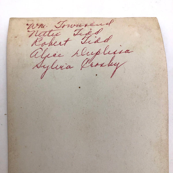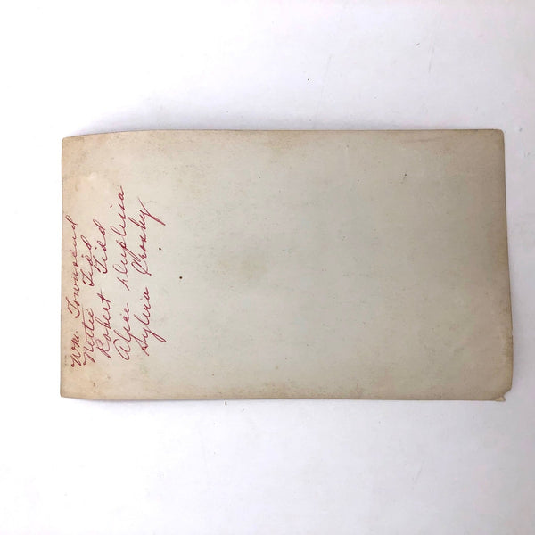 5 1/2 x 3 3/8 and in good condition, with handwritten names of subjects on reverse.