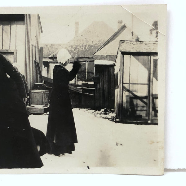 A very curious one, feeling to me like an early film still--very striking, but what is going on here? Perhaps the woman in the foreground (what a face!) is in fact on ice skates, which would explain her strange posture, or perhaps she is hiding something or someone behind her skirt? (Is there a child there, bent over, in black too?) And what is the woman behind her with raised arm as if about to chop the air actually doing? I don't know, but in their long black coats and bonnets it feels as if they inhabit a world of their own, with its own particular rituals and logics! I could look at this one all day.