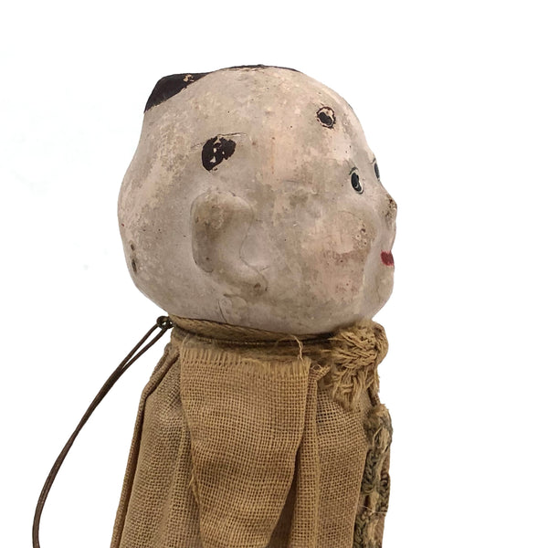 Curious Little Man, Antique Spring Body Toy with Papier Mache Head and Hands