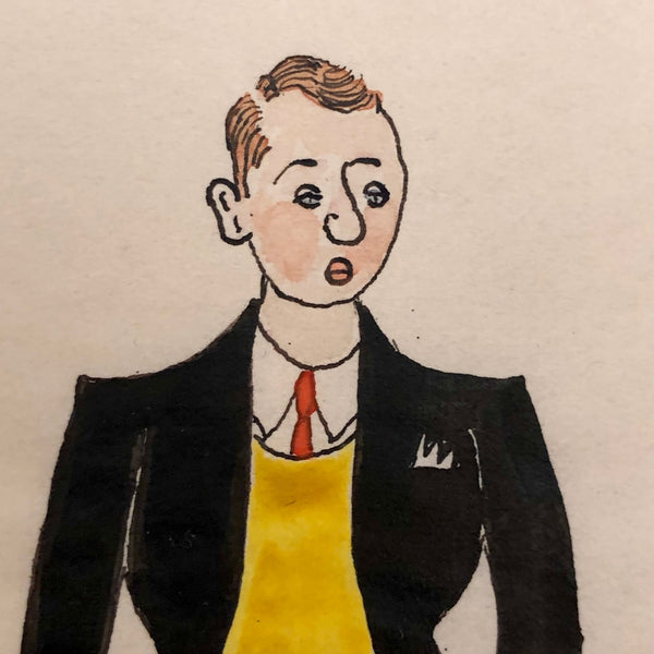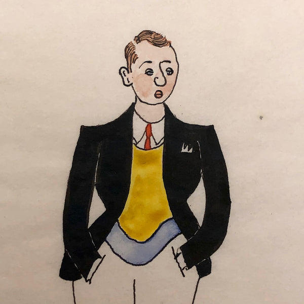 What a character! The fact that this dapper fellow's pants and shoes were never finished makes him feel pretty timely for this era of pajama-panted zoom calls! One might imagine the artist thought him a bit of a snob, though I find it hard to think that anyone wearing such a fabulously bold yellow vest wouldn't have a fun-loving and adventuresome nature just waiting to bust out!A