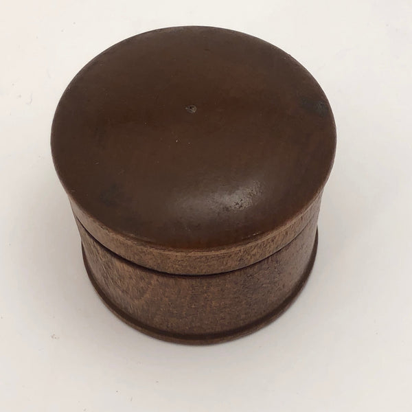 This is a terrific old turned wood box in near perfect condition, made of walnut I believe. I keep a keen eye out for beautiful little treen boxes like this one, and this is an especially lovely one. Great on a desk, vanity, or really anywhere at all!