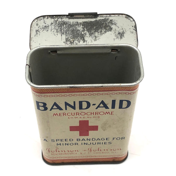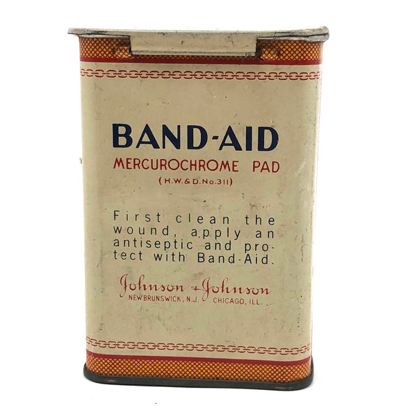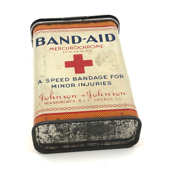 I'm a sucker for a red cross logo, and a big fan of early Johnson and Johnson Band-Aid packaging. Band-aids were launched in 1920, but it was 1926 when iconic Band-Aid tins like this one were introduced; this one I believe dates to around that time. The person I bought it from shared that after the death of his grandmother they found numerous Band-Aid tins in her home stuffed with cash--and indeed these tins were much saved e and used as containers for other things, which I think is part of what helped make the Band-Aid brand so ubiquitous.