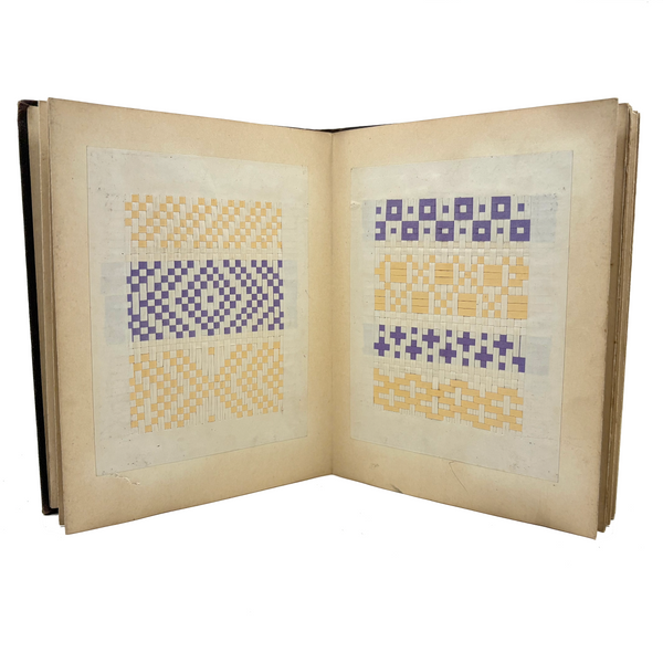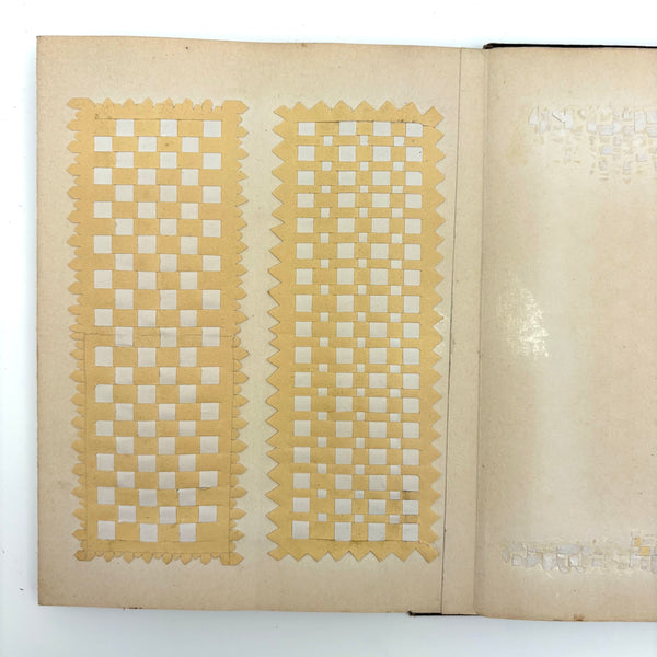 Not one but two complete Froebel kindergarten albums today, which I chose to list side by side as they complement each other wonderfully--this one German, c. 1880s I believe, showcasing paper weaving, and the other American, c. 1890s, showcasing the exercises of paper pricking and thread drawing, very very finely in both cases. Both are clearly the work of kindergarten teachers, showing mastery of the exercises and materials, and tremendous dexterity of execution.